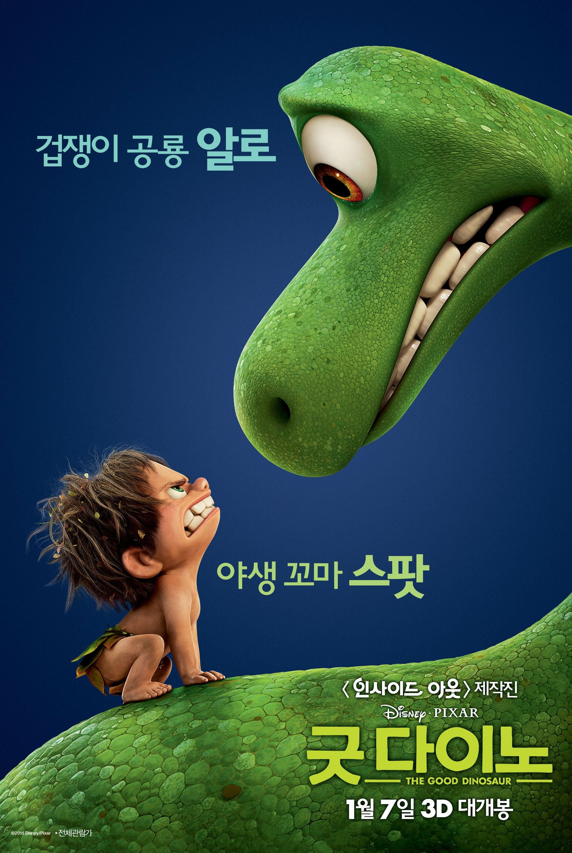 《굿 다이노》(The Good Dinosaur, 2015)는 디즈니·픽사가 제작한 3D 애니메이션으로, "만약 공룡이 멸종하지 않았다면?"이라는 가정에서 출발한 독특한 세계관을 배경으로 합니다. 피터 손 감독의 연출로, 픽사 특유의 감성적 서사와 생생한 자연 묘사, 그리고 따뜻한 우정 이야기를 담아낸 가족 애니메이션입니다.
