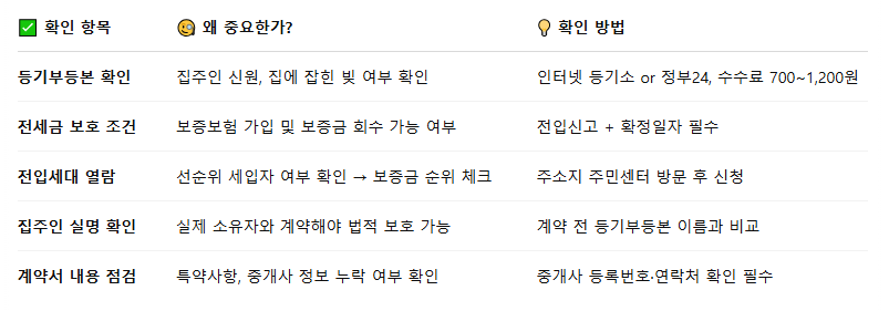 | 등기부등본 확인 | 집주인, 빚, 법적 문제 확인 가능 |